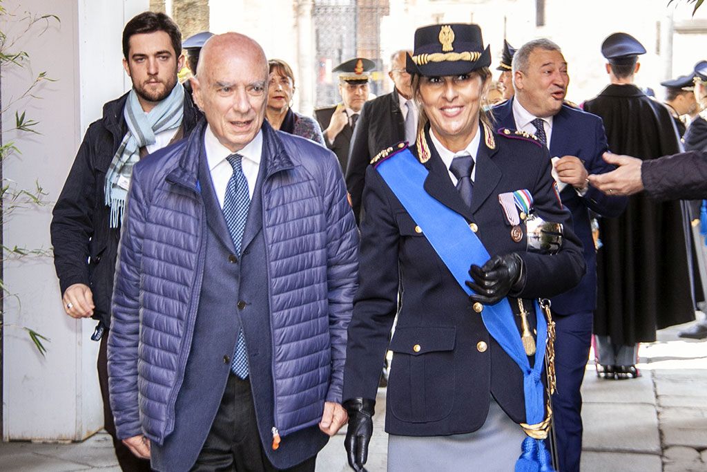 In cortile Federico II, davanti alle autorità civili, politiche, militari e religiose, il capo della Squadra Mobile Marco Masia ha letto i messaggi istituzionali, dopodichè ha preso la parola il questore Sinigaglia, al suo primo discorso nelle celebrazioni per l’anniversario della Polizia.