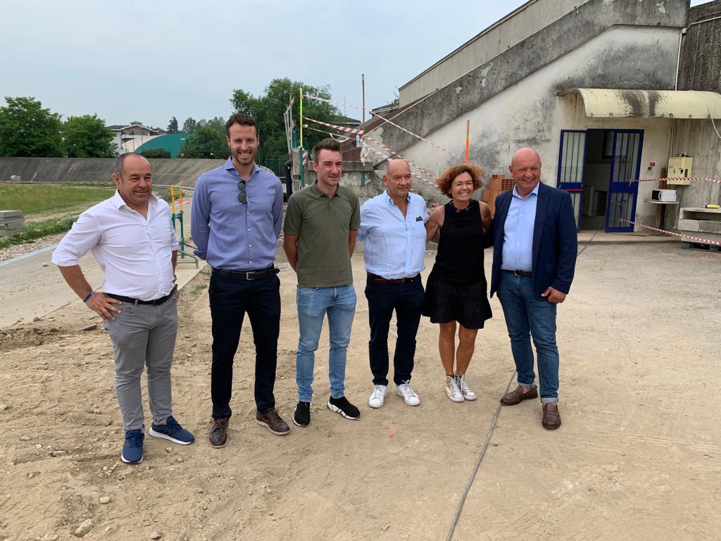 Proseguono i lavori per la realizzazione del nuovo velodromo a Crema. Nonostante le molteplici difficoltà legate alla pandemia ed ai costi e reperibilità delle materie prime, il cantiere continua ad essere più operativo che mai. Questa mattina è stato fatto un “pit-stop” per verificare lo stato di avanzamento dei lavori, a cui hanno partecipato anche personaggi di spicco del mondo del ciclismo come Elia Viviani, oro olimpico a Rio, Stefano Pedrinazzi, presidente federciclismo della Lombardia, e Marco Villa, commissario tecnico della nazionale italiana di ciclismo su pista maschile.
