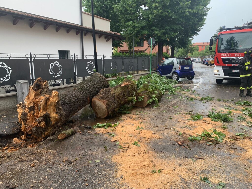 Un breve ma potente temporale si è abbattuto su Crema. Il forte vento ha causato il crollo di diversi alberi in città che hanno reso necessario l’intervento tempestivo di Vigili del Fuoco e Polizia Locale.