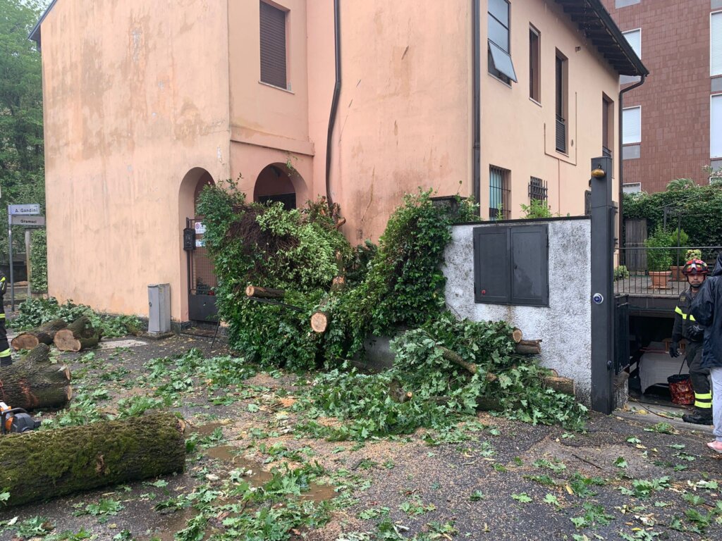 I Vigili del Fuoco hanno dovuto tagliare a pezzi l’albero di grosse dimensioni per rimuoverlo dalla strada e dall’abitazione colpita. Via Gandini ovviamente è rimasta chiusa per diverso tempo per permettere ai Vigili di effettuare tutte le operazioni necessarie per ripristinare lo stato di percorribilità del tratto stradale.