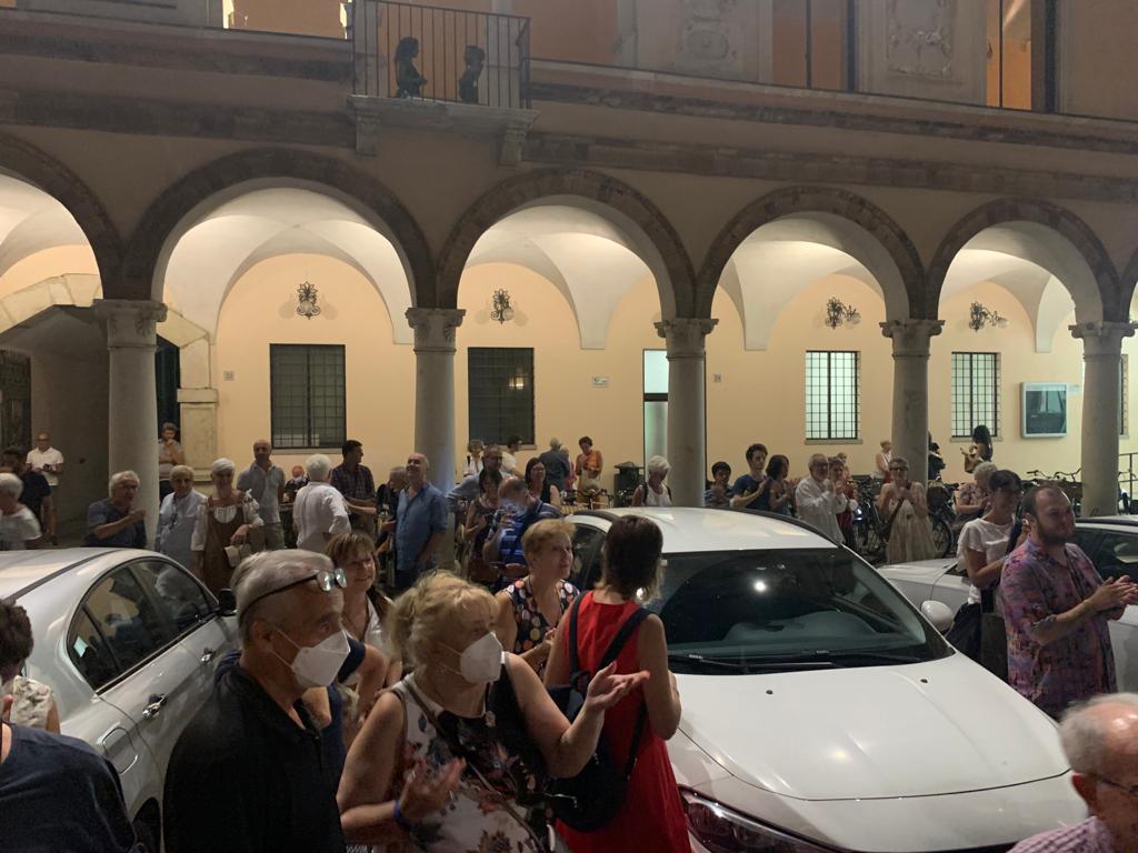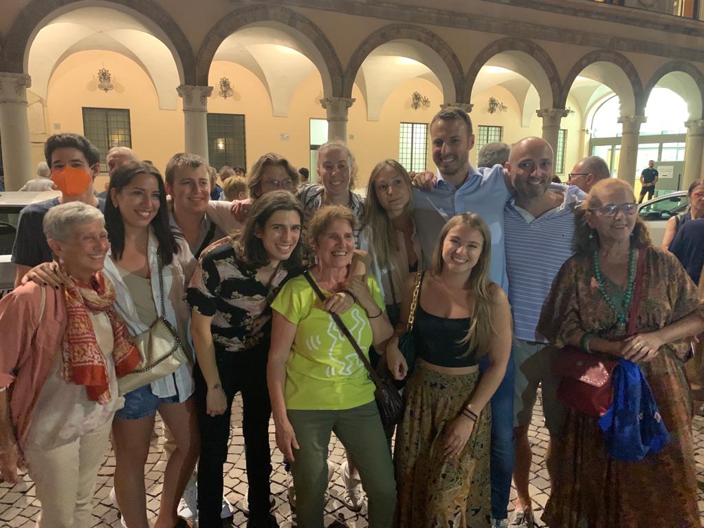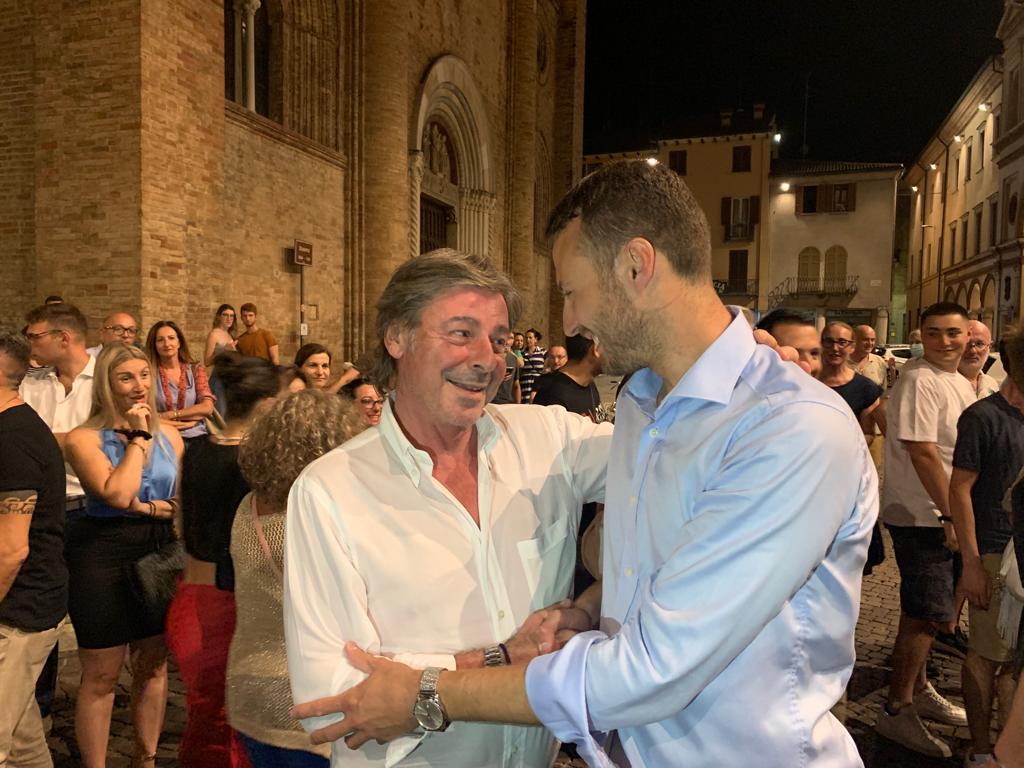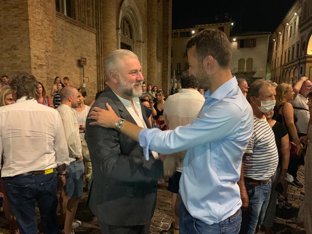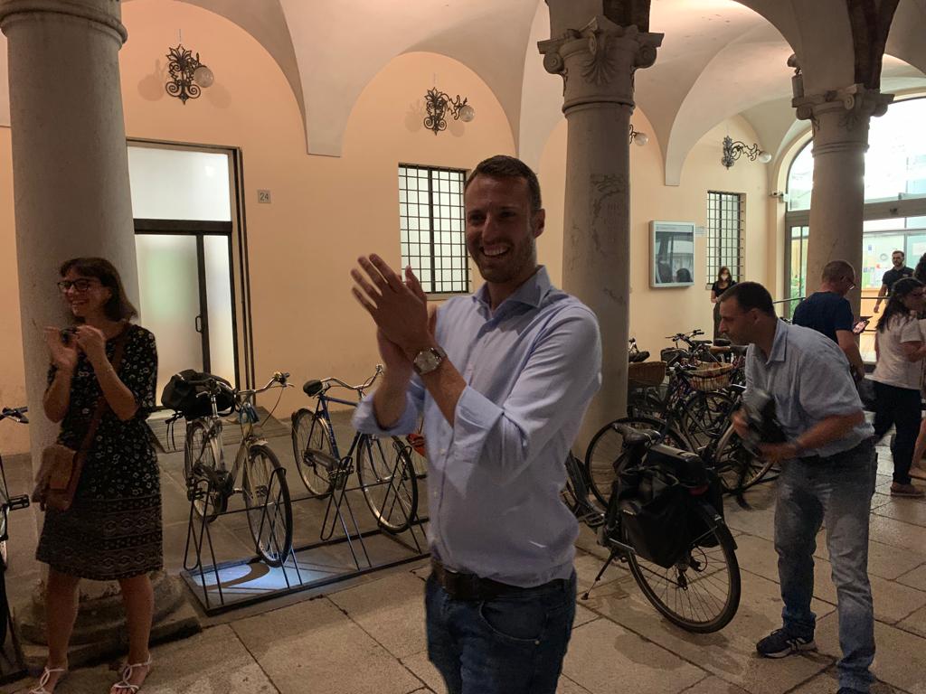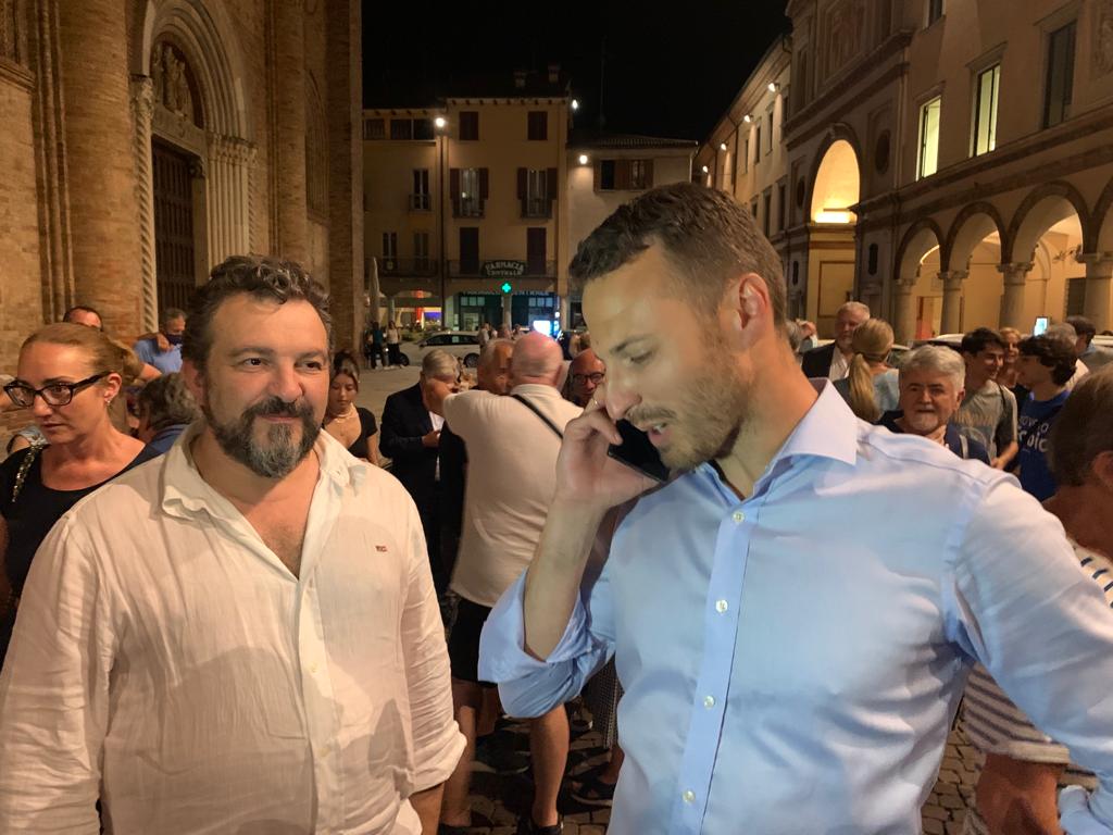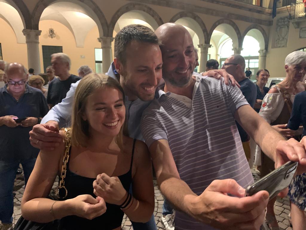 Oltre ai membri delle liste che sostenevano Fabio Bergamaschi, sono accorse in centro anche tante persone che ci tenevano a congratularsi con il nuovo sindaco per la vittoria.