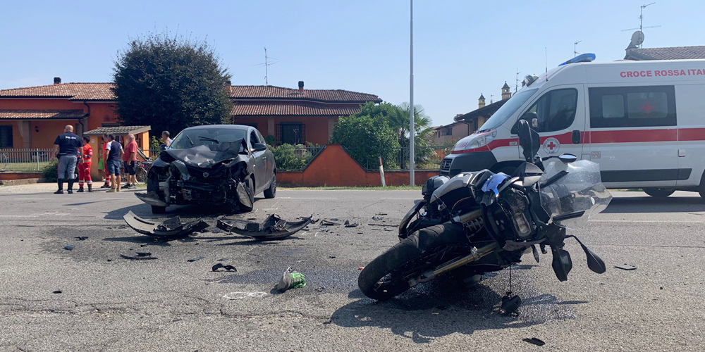 Pauroso schianto nel primo pomeriggio di oggi, venerdì 12 agosto, a Ripalta Cremasca, in via De Gasperi, dove un’auto e una moto si sono scontrati frontalmente. La vettura, una lancia Y condotta da una donna di 50 anni di Vaiano, stava svoltando verso il bar gelateria Marimar quando ha centrato in pieno la moto, condotta da un 28enne, che stava transitando in direzione Capergnanica.