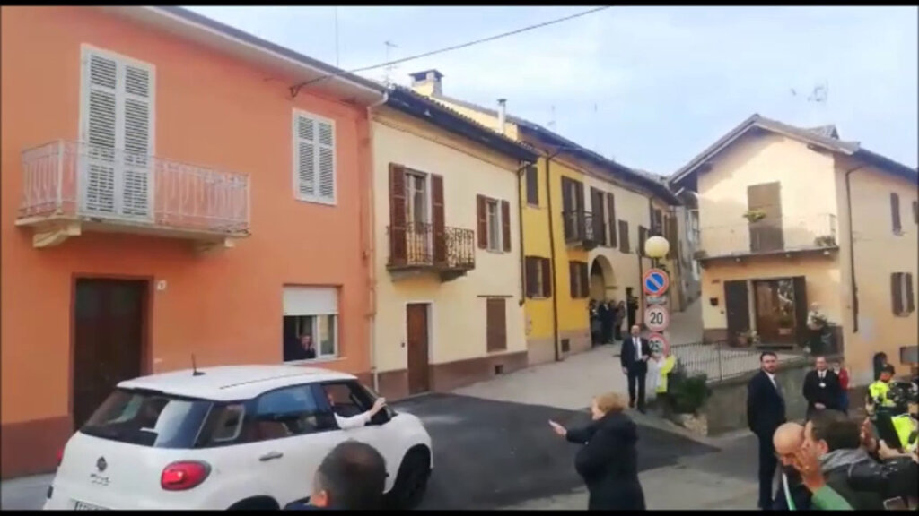 Papa Francesco è arrivato a Portacomaro (Asti), dopo una breve sosta in una cappella a Portacomaro Stazione dove sono seppelliti alcuni suoi avi. Ad accoglierlo Nella e Armando Bergoglio, ultimi esponenti della famiglia con il cognome Bergoglio. “Gli ho detto che gli voglio bene, lui mi ha riconosciuto e mi ha chiesto se cucino ancora, avevo infatti un ristorante”, ha raccontato Nella Bergoglio dopo il breve incontro.