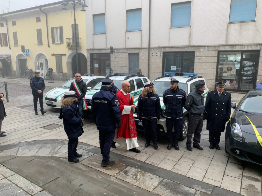 Dopo la Santa Messa, celebrata nella Chiesa Parrocchiale Santa Margherita, il parroco di Pandino, don Eugenio Trezzi ha benedetto le auto della Polizia Locale presenti davanti al sagrato, mentre successivamente autorità e forze dell’ordine si sono spostate in Sala Consiliare per la consegna delle benemerenze e dei riconoscimenti.