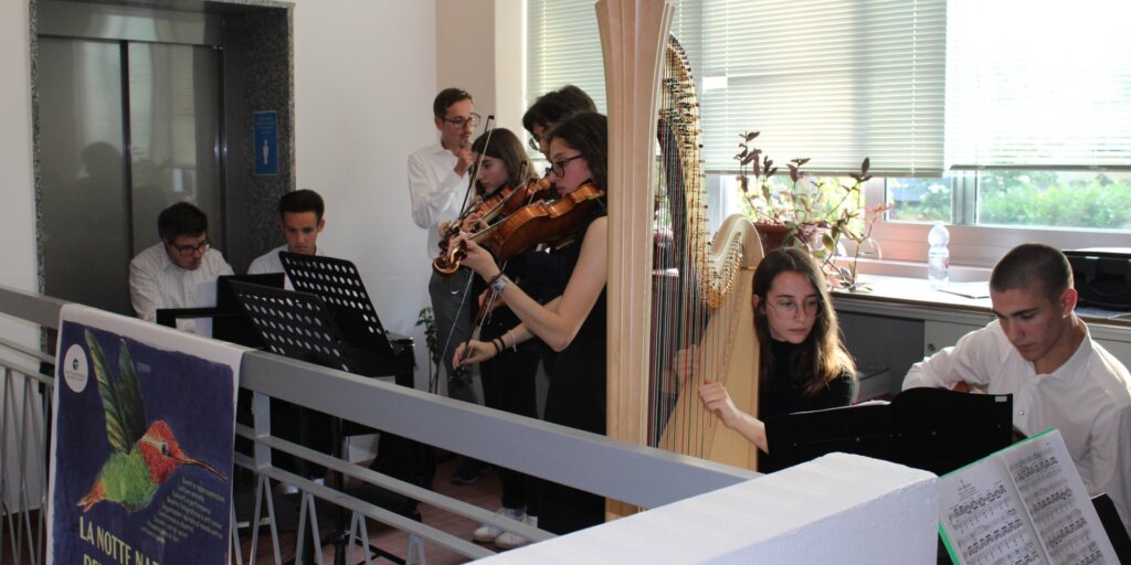 Nelle varie aule e nei corridoi, musica, rappresentazioni, esposizioni, racconti di progetti, iniziative, esperienze, realizzate in questi anni dagli studenti del Racchetti, ma anche impegno sociale, con la raccolta fondi da destinare all’Unicef, nell’ambito dei percorsi di educazione civica.