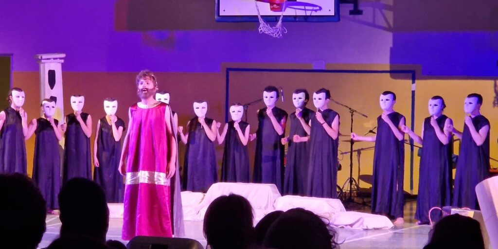 Dopo il rinfresco curato dal CrForma, presso la palestra della scuola i ragazzi che hanno partecipato al laboratorio teatrale del “Racchetti da Vinci” hanno proposto tra gli applausi dei presenti, la rivisitazione dell’Antigone di Sofocle, recentemente portata in scena alla IX edizione del “Festival Thauma – Teatro antico in scena” promosso dalla Cattolica a Milano.