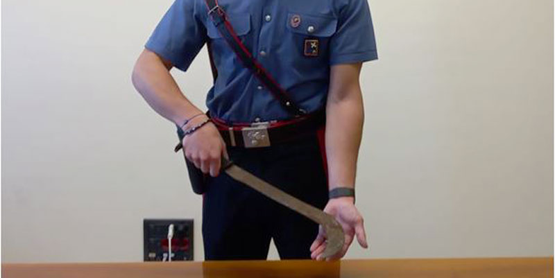 I militari hanno verificato l’informazione ricevuta e, in effetti, hanno trovato la roncola, della lunghezza di 45 centimetri, che il 26enne ha confermato di avere usato e che è stata sequestrata.