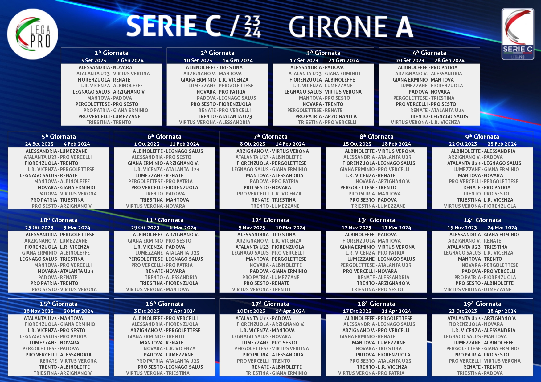 I gialloblù, in ogni caso, non incroceranno nessuna retrocessa dalla Serie B, ma le big non mancano, a cominciare da Alessandria, Vicenza, Padova e Pro Vercelli, ma in generale si tratta di un gruppo tosto per i cremaschi.