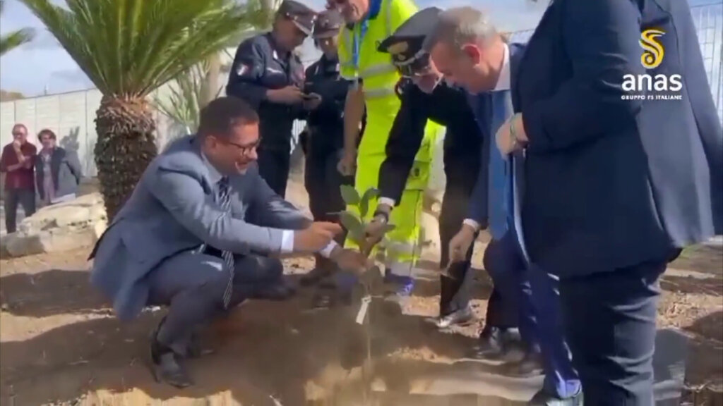 MISTERBIANCO (CATANIA) (ITALPRESS) – Presso la sede Anas di Misterbianco, nel Catanese, si è tenuto l’evento “Un Albero per il Futuro – l’Albero di Falcone”. Nel giardino antistante la sede Anas è stato piantato un albero duplicato dal Ficus che cresce nei pressi della casa di Palermo dove risiedeva il giudice Giovanni Falcone, assassinato dalla mafia nel 1992. Erano presenti il Vice Prefetto di Catania, Antonio Gullì, il Comandante del Reparto Carabinieri Biodiversità di Reggio Calabria, Giuseppe Micalizzi, l’assessore ai lavori pubblici del Comune di Catania, Sergio Parisi, il Vice Sindaco del Comune di Misterbianco, Santo Tirendi, il Vice Dirigente Polstrada di Catania, Angela Cannarozzo, il Comandante Polstrada di Siracusa, Antonio Capodicasa, il Responsabile della Struttura Territoriale Anas, Raffaele Celia, il Responsabile Area Gestione Rete Catania, Nicola Dinnella. Grazie alla collaborazione fra Carabinieri, Fondazione Falcone, Comune e Soprintendenza di Palermo, infatti, alcune gemme del Ficus sono state duplicate nel moderno Centro Nazionale Carabinieri per la biodiversità forestale (CNBF), all’avanguardia in Europa nello studio e conservazione di specie forestali autoctone. Le nuove piante generate dal Ficus originario sono già state donate a centinaia di istituti scolastici di primo e secondo grado, nonché svariati enti pubblici. vbo/gtr