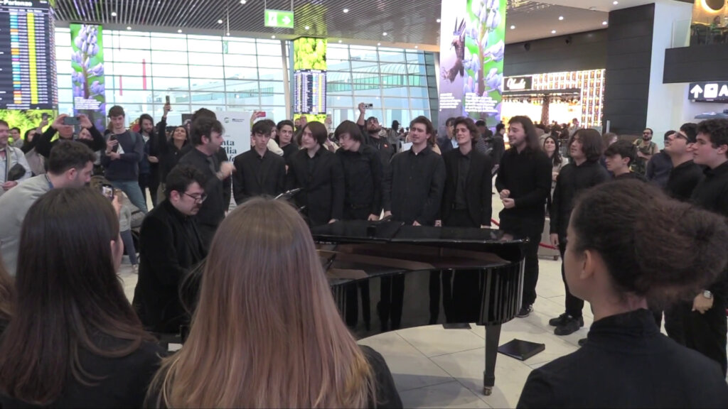 Ad esibirsi 22 tra ragazzi e ragazze che, accompagnati dal pianista Riccardo Balsamo, si sono cimentati in una serie di brani natalizi e classici eseguiti a cappella: da “Christmas Trip” a “Carol of the Bells”, passando per “Viva la Vida” dei Coldplay fino all’intramontabile “We Are The Champions” dei Queen. L’appuntamento odierno rientra nell’ambito di “Santa Cecilia al Volo”, un evento di cultura, tra i molti organizzati dalla società di gestione Aeroporti di Roma per l’intrattenimento dei passeggeri che già da qualche anno diverte con performance musicali, i passeggeri in attesa dell’imbarco sul proprio volo.