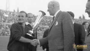 Un pareggio che valeva come uno scudetto. Come qualche anno prima un pareggio valse la Coppa delle Fiere. Lui salvò il 3-3 della semifinale di ritorno con l’Hibernian. Non poteva giocare nello spareggio perché il giorno prima era sceso in campo con la Nazionale. Ma quando si presentò in ritiro i compagni lo vollero in campo. La Roma vinse la partita e poi la coppa nella finale col Birmingham. Durante il giro di campo non la mollò mai.