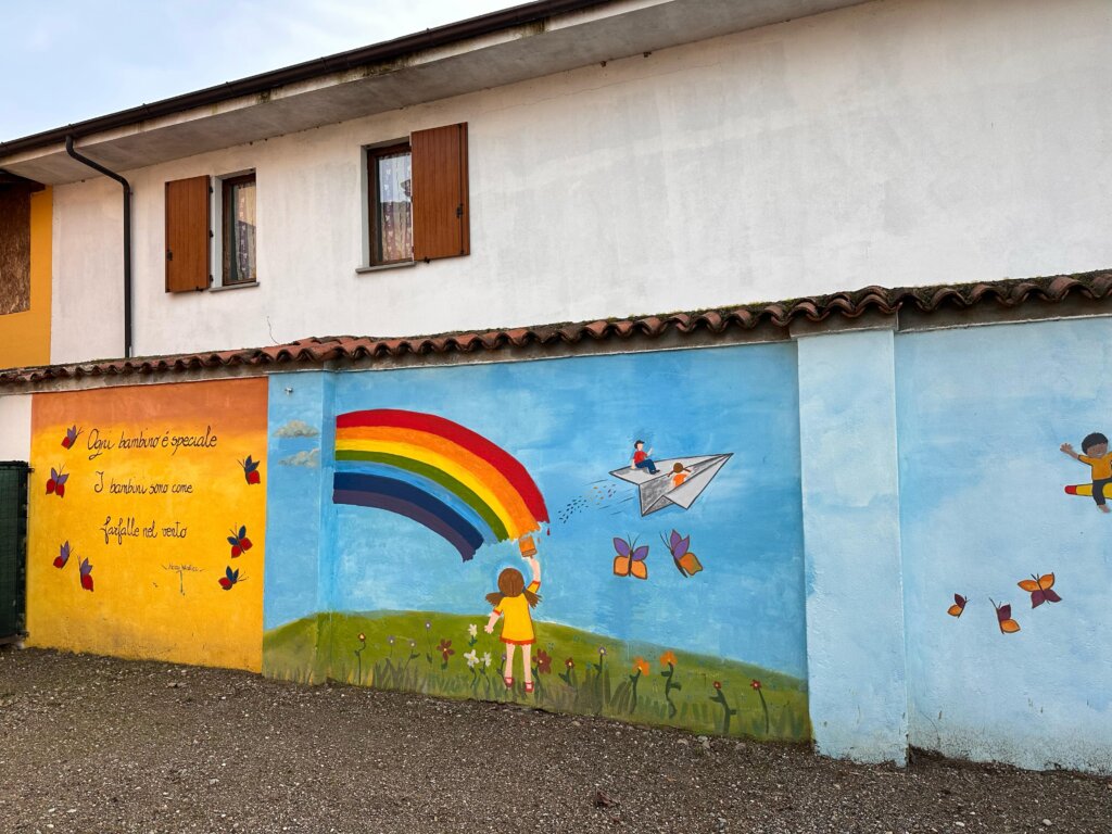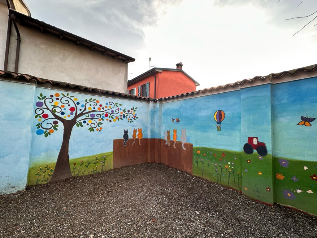 E’ stata posta un’attenzione particolare alla qualità, sia per i materiali utilizzati, sia per le attrezzature. Le mura che circondano il parchetto sono state invece colorate dai bambini.