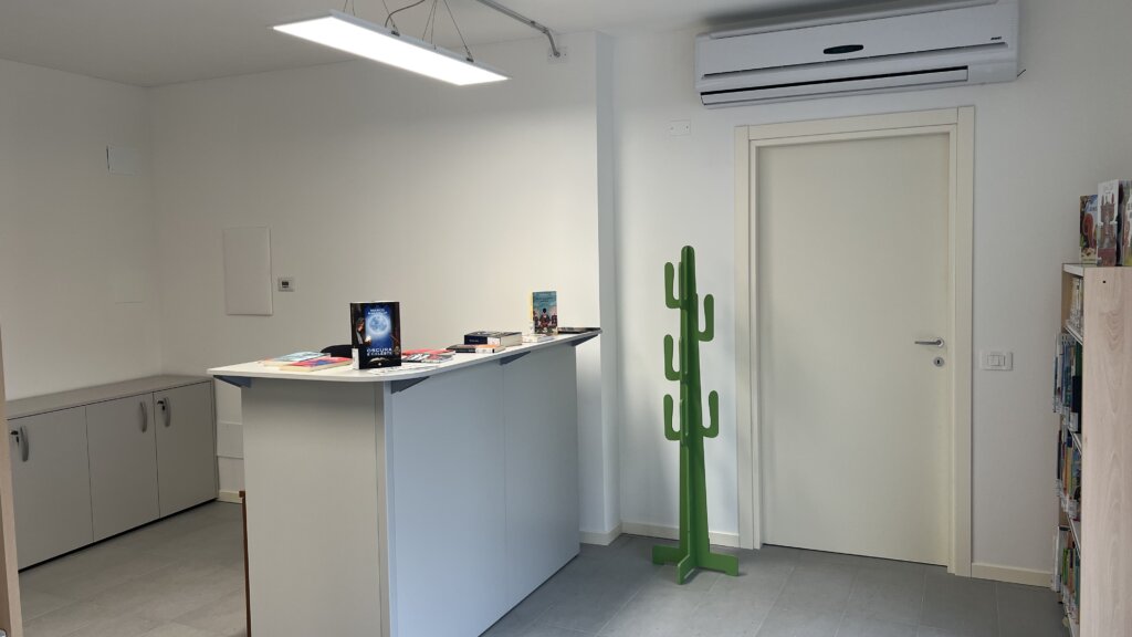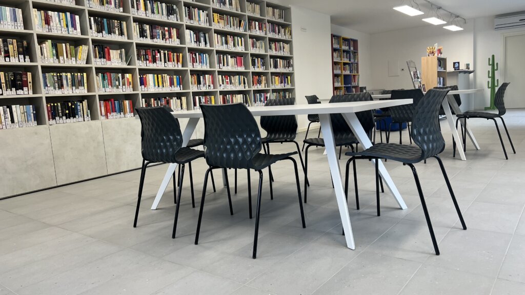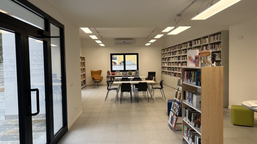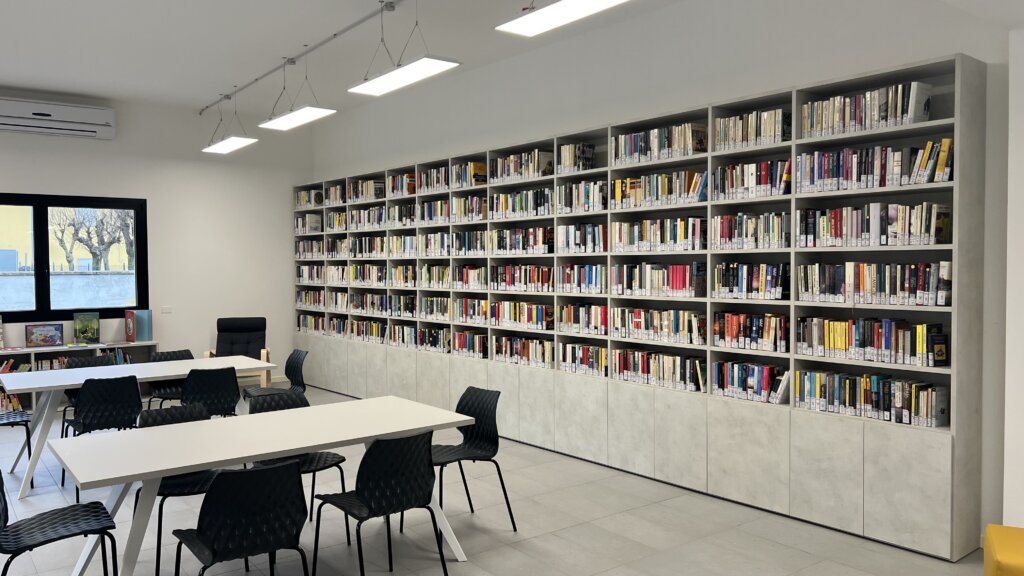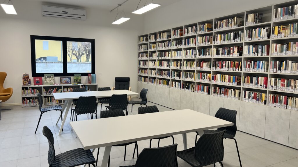 La riqualificazione del magazzino, dunque, si sposava perfettamente con il progetto di una nuova biblioteca comunale. Lo spazio bibliotecario, dotato di tavoli molto più ampi e collegamento Wi-fi, farà parte del centro culturale, formato anche da una saletta per incontri da parte delle varie associazioni (collocata nello stesso edificio della biblioteca), e la chiesa vecchia, diventata sala consiliare e luogo per le unioni civili.