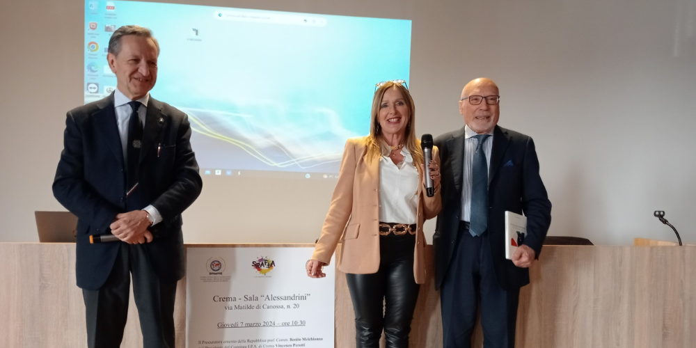 Presenti in sala i relatori Benito Melchionna, Procuratore emerito della Repubblica, e Vincenzo Perotti, presidente IPA Crema; davanti ad un centinaio di studenti partecipanti.