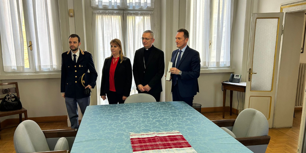 Nel corso della mattinata di oggi, 25 marzo, il Questore della provincia di Cremona Michele Davide Sinigaglia, unitamente al Vicario del Questore Dott.ssa Belluso, al Capo di Gabinetto dott.ssa Claudia Vismara e al Dirigente facente funzioni del Commissariato di Crema dott. Alessio Rocca, ha consegnato a Mons. Antonio Napolioni Vescovo di Cremona e a Mons. Daniele Giannotti Vescovo di Crema l’ampolla dell’olio prodotto dagli ulivi del Giardino della Memoria “Quarto Savona Quindici”, che verrà consacrato nel corso della Settimana Santa e, divenuto sacro crisma, utilizzato per l’ amministrazione dei Sacramenti. L’iniziativa, che coinvolge tutte le Questure, si inserisce nell’ambito delle manifestazioni per ricordare le vittime della mafia, nel 32^ anniversario degli attentati di Capaci e Via D’Amelio.