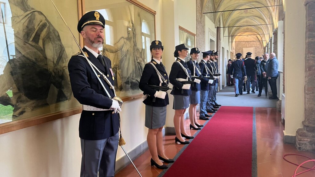 La cerimonia è proseguita con la lettura dei messaggi del presidente della Repubblica, Sergio Mattarella, del ministro dell’Interno, Matteo Piantedosi e del capo della polizia Vittorio Pisani.