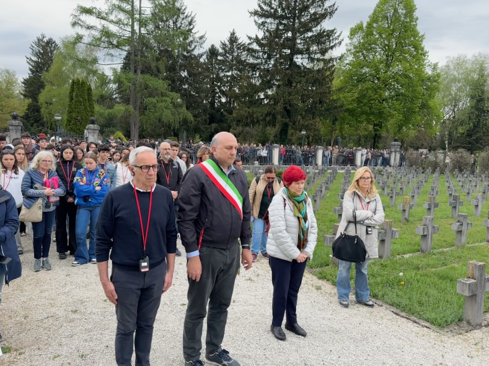Tre momenti toccanti nel cimitero di Žale di Lubiana, nel secondo giorno del Viaggio della Memoria. Accompagnati dallo storico Federico Tenca Montini, dell’Università di Udine, gli studenti hanno percorso il Sentiero della Rimembranza e della Fratellanza, con soste in particolare al Cimitero Militare Italiano della prima Guerra Mondiale, al Memoriale dei combattenti Sloveni contro gli occupanti italiani e tedeschi caduti nel 1941-45, al Memoriale degli ostaggi di Gramozna Jama dove la comitiva ha incontrato il vicesindaco di Lubiana, Boštjan Koritnik, che in perfetto italiano, come atto simbolico di avvicinamento, ha letto un discorso intenso.