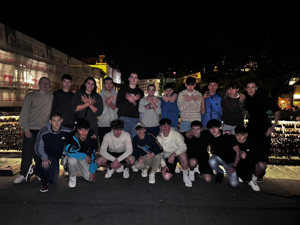 “Questa mattina verso le 9:00 è iniziata la nostra mattinata nella meravigliosa città di Lubiana, gioellino della Slovenia. Dopo due orette di tempo libero passate tra risate, shopping e qualche caffè (mai come quello italiano, intendiamoci!) ci siamo diretti verso il Museo di Storia Contemporanea della Slovenia dove abbiamo ripercorso le tappe più significative della storia di questo stato attraverso una presentazione e una visita libera all’interno del luogo. È stato un momento molto formativo per tutto, che ha permesso a tutti noi di capire i complessi eventi che hanno portato la Slovenia ad essere cosi com’è. Dopo una breve pausa pranzo, di corsa al Cimitero Municipale di Lubiana dove abbiamo avuto la possibilità di deporre due corone di fiori davanti al memoriale dei Caduti della Prima e Seconda Guerra Mondiale, e successivamente, durante la passeggiata nel percorso della rimembranza abbiamo posato anche la terza, davanti al Memoriale dei caduti a causa del occupazione italiana in Slovenia. In questa tappa del pomeriggio, sono stati fondamentali per noi lo storico Federico Tenca, Ilde Bottoli, il presidente degli enti locali per la pace della provincia di Cremona Rosolino Azzali che, in un momento molto emozionante, ha stretto la mano al vicesindaco della città visitata oggi. È stato proprio in questo momento che noi ragazzi, insieme ai nostri docenti, abbiamo avuto la possibilità di riflettere su quanto la storia sia fondamentale per comprendere meglio quanto accaduto in passato e cercare di non farlo ricapitare, anche se, come dice sempre Primo Levi, se è già successo non vuol dire che non possa risuccedere. Dopo 16654 passi fatti per la bellezza di 11,8 km percorsi, siamo ritornati in hotel, morti e distrutti ma come sempre, stupiti e coinvolti”. Liceo Anguissola – Camilla Paletti 5Bbio