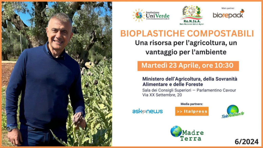 ROMA (ITALPRESS) – Convegno “Bioplastiche compostabili: una risorsa per l’agricoltura, un vantaggio per l’ambiente” promosso da Fondazione UniVerde in collaborazione con Re.N.Is.A., Rete Nazionale Istituti Agrari, e main partner Biorepack, consorzio nazionale per il riciclo organico degli imballaggi in plastica biodegradabile e compostabile, a Roma, martedì 23 aprile, presso il Ministero dell’Agricoltura, della Sovranità Alimentare e delle Foreste e in diretta streaming su Radio Radicale.