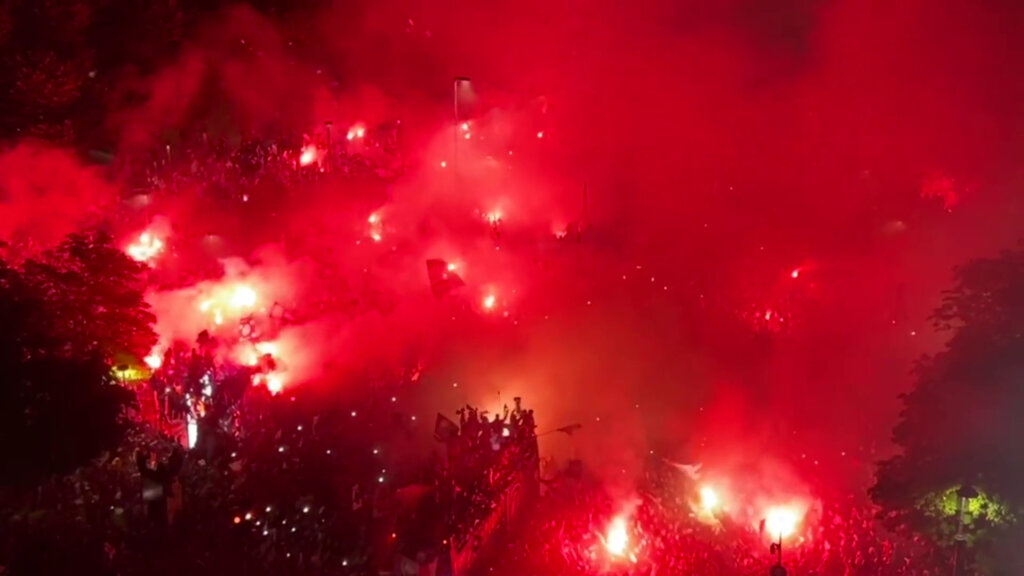 BERGAMO (ITALPRESS) – L’Atalanta sfila per le strade di Bergamo a bordo di un pullman scoperto. Mister Gasperini e i suoi giocatori hanno festeggiato il trionfo in Europa League, mostrando ai bergamaschi la storica Coppa vinta battendo il Bayer Leverkusen nella finale di Dublino.
