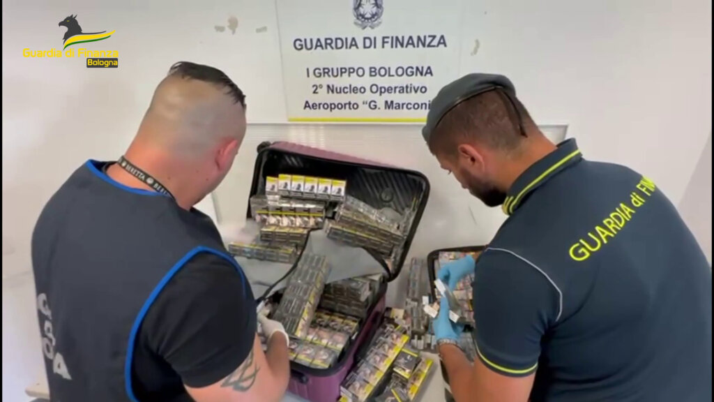 BOLOGNA (ITALPRESS) – I militari del Comando Provinciale della Guardia di Finanza, unitamente ai funzionari dell’Agenzia delle Dogane e dei Monopoli in servizio presso l’Aeroporto “G. Marconi” di Bologna, hanno sequestrato, in due distinte operazioni, 180 stecche di sigarette marca Marlboro Red e Parliament Night Blue, pari a 36 kg, e oltre 8 kg di tabacco da masticare, marca Stoker’s e America’s best. I generi di monopolio sono stati scoperti, rispettivamente, all’interno dei bagagli di una cittadina bulgara proveniente da Istanbul (Turchia) e di un cittadino italiano proveniente dagli Stati Uniti. I 36 kg di sigarette sono stati sottoposti a sequestro penale e la responsabile è stata denunciata alla Procura della Repubblica di Bologna per contrabbando di Tabacchi Lavorati Esteri. Il tabacco da masticare è stato anch’esso sottoposto a sequestro e al cittadino italiano, responsabile della violazione è stata applicata la sanzione amministrativa pari a oltre euro 40 mila.