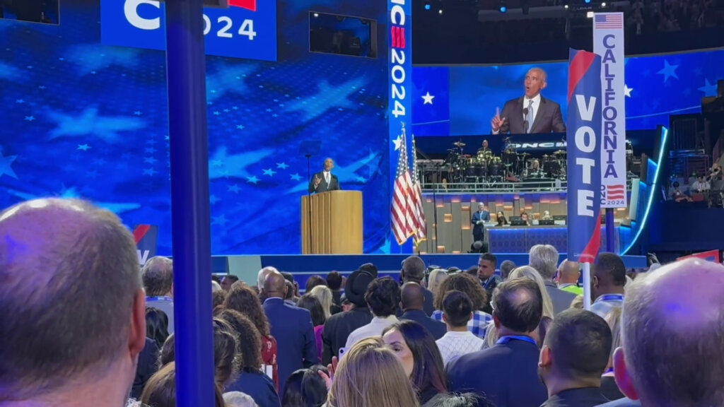 CHICAGO (USA) (ITALPRESS) – Da “Yes, we can” a “Yes, she can”. Barack Obama ha riadattato il suo storico motto dedicandolo a Kamala Harris, attuale vicepresidente e in corsa per la Casa Bianca, infiammando la convention dei democratici di Chicago. Assieme alla moglie Michelle, l’ex presidente ha tenuto banco e attaccato a più riprese Donald Trump: “Non abbiamo bisogno di altri quattro anni di caos”.