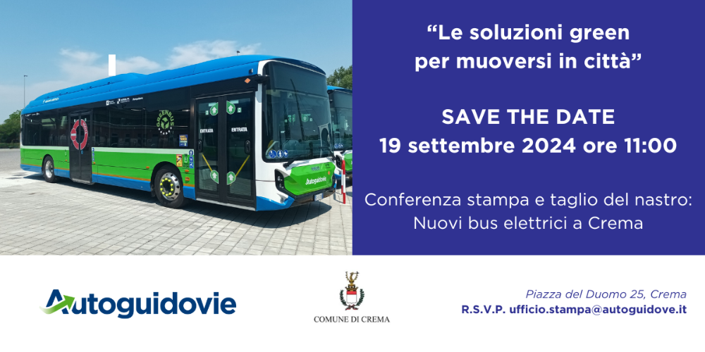 A Crema è arrivato l’atteso momento per assistere ad una rivoluzione in ambito di mobilità e trasporti. Giovedì 19 settembre, alle 11 del mattino, in Piazza del Duomo verranno presentati ufficialmente i nove nuovi autobus elettrici di Autoguidovie, annunciati lo scorso dicembre dalla nota ditta di trasporti, che entreranno in servizio nell’area Cremasca.