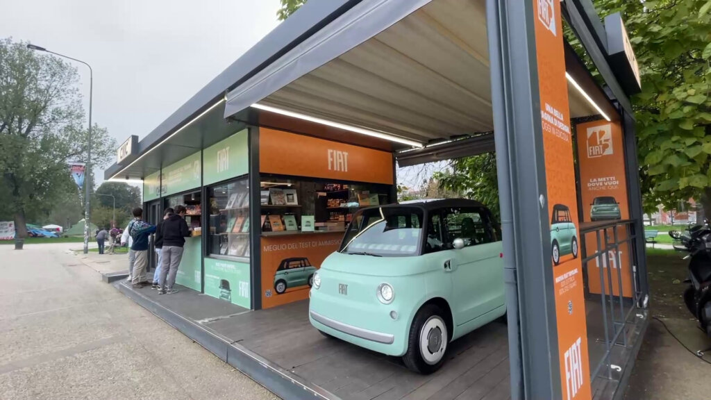 MILANO (ITALPRESS) – Si chiama Top News la nuova iniziativa che ha portato Fiat Topolino nelle nuove edicole Civic di Milano delle zone dei Navigli e Città Studi, due strutture storiche trasformate in moderni luoghi di incontro e confronto, dove si tengono dibattiti, eventi culturali e iniziative non convenzionali. Un matrimonio caratterizzato dunque da originalità ed estro che va ben oltre la semplice esposizione e il semplice test drive del quadriciclo ultracompatto di casa Stellantis, 100% elettrico. Grazie alle dimensioni contenute e alla sua maneggevolezza, la Topolino è un mezzo che si adatta perfettamente al traffico cittadino. Fiat Topolino è disponibile nelle versioni aperta e chiusa, ha una velocità massima di 45 km/h, una batteria da 5,4 kWh, fino a 75 km di autonomia ed è possibile guidarla a partire dai 14 anni.