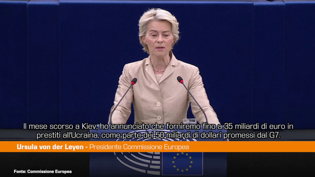 STRASBURGO (FRANCIA) (ITALPRESS) – “Esiste un solo percorso per raggiungere una pace giusta per l’Ucraina e per l’Europa. Dobbiamo continuare a rafforzare la resistenza dell’Ucraina con supporto politico, finanziario e militare. Il mese scorso a Kiev, ho annunciato che forniremo fino a 35 miliardi di euro in prestiti all’Ucraina, come parte dei 50 miliardi di dollari promessi dal G7. Questo prestito sarà rimborsato dai profitti inattesi dei beni russi immobilizzati. E confluirà direttamente nel bilancio nazionale dell’Ucraina. Stiamo facendo pagare alla Russia i danni che ha causato. E staremo al fianco dell’Ucraina durante questo inverno e per tutto il tempo necessario”. Lo ha detto la presidente della Commissione Europea, Ursula Von der Leyen, intervenendo alla plenaria di Strasburgo del Parlamento Ue.