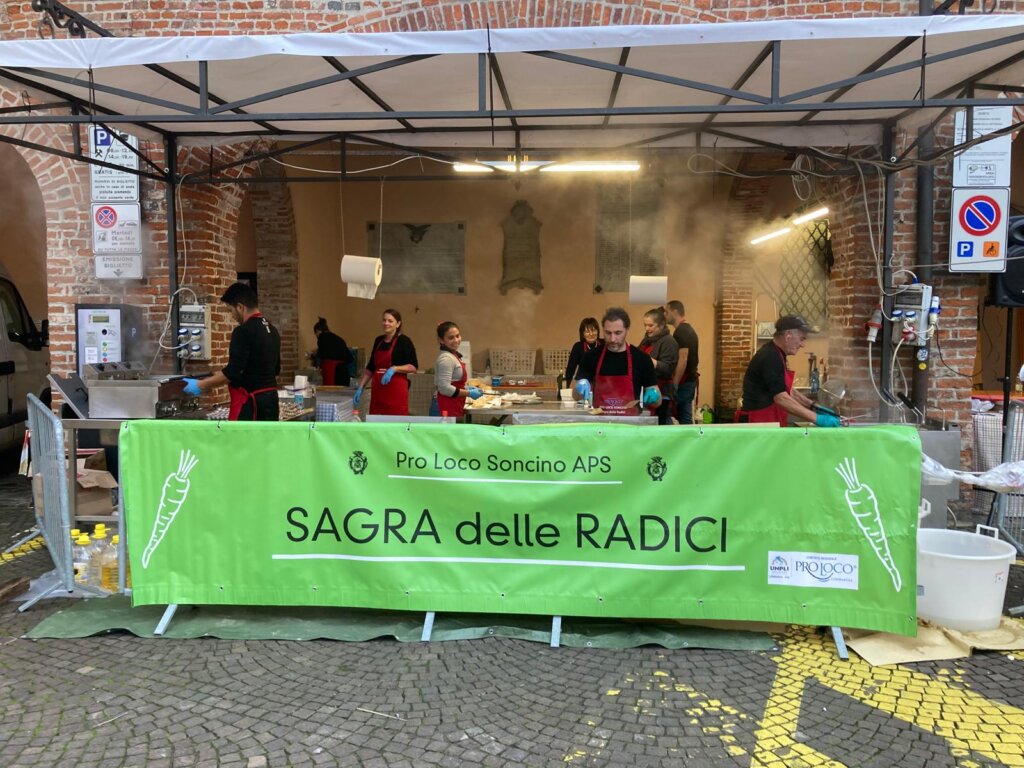 Da quasi sessant’anni (la prima fu organizzata nel 1966), si svolge puntualmente nella quarta domenica di ottobre la Sagra delle Radici di Soncino. La radice amara, gustosa verdura invernale, è un prodotto caratteristico del territorio circostante l’antico borgo di Soncino. Si consuma come una verdura, ha la forma di una carota più chiara e allungata ed è un depurativo eccezionale.
