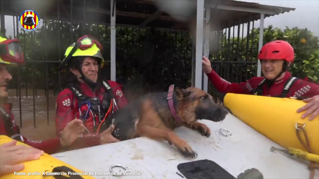 VALENCIA (ITALPRESS) – I vigili del fuoco hanno salvato ad Alzira, nella comunità autonoma valenciana, una coppia con i due cani, a seguito delle disastrose alluvioni che hanno colpito la regione.