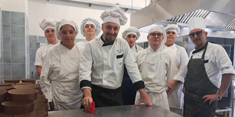 L’iniziativa è curata dai docenti di cucina, Ferdinando Sapienza e Alessio della Mura e coinvolge gli studenti delle classi quarte (le quinte in questo periodo sono invece impegnate nell’attività di PCTO presso aziende esterne) impegnandoli in queste settimane nella produzione di panettoni, secondo un calendario che tiene conto delle diverse fasi di lavorazione.