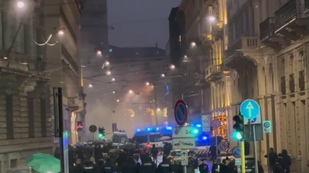 MILANO (ITALPRESS) – Diversi manifestanti del corteo per la Palestina si sono avvicinati da piazza Cordusio al cordone delle forze dell’ordine che presidiano l’accesso a piazza della Scala, blindata in vista dell’apertura della stagione lirica. Sono stati accesi dei fumogeni rossi ed esplosi alcuni petardi, ma senza che i dimostranti riuscissero a superare il cordone di sicurezza.(ITALPRESS).