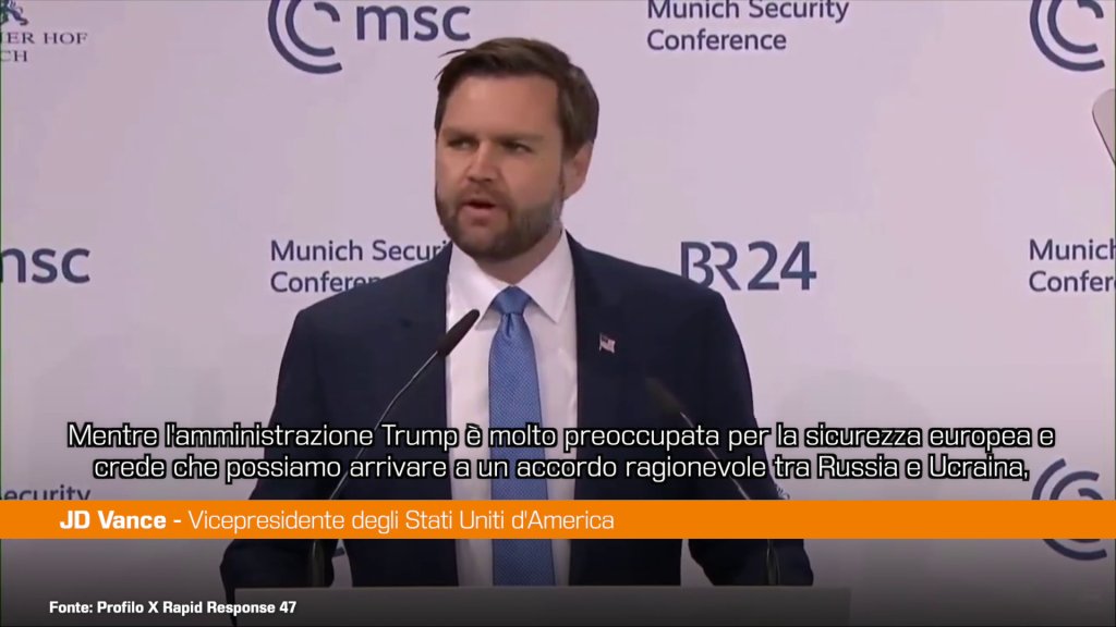 MONACO DI BAVIERA (GERMANIA) (ITALPRESS) – “Mentre l’amministrazione Trump è molto preoccupata per la sicurezza europea e crede che possiamo arrivare a un accordo ragionevole tra Russia e Ucraina, crediamo anche che sia importante nei prossimi anni che l’Europa faccia un grande passo avanti per provvedere alla propria difesa”. Lo ha detto il vicepresidente degli Stati Uniti, JD Vance, nel suo intervento alla Conferenza sulla Sicurezza a Monaco.