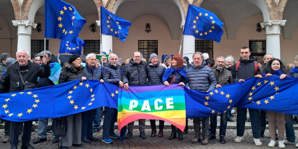 Matteo Piloni: “Anche la piazza di Crema collegata idealmente alla partecipatissima piazza di Roma. È un collegamento sotto un’unica bandiera, quella dell’Europa, per sostenere l’idea di un’Europa unita e sostenere gli ideali che questa rappresenta in un momento di grande difficoltà. Gli Stati Uniti attraverso il loro governo Trump stanno mettendo in discussione un’alleanza basata sulla difesa che dura da 80 anni ed è evidente che come Europa ci dobbiamo interrogare su come rafforzare e garantire la sicurezza a tutti gli europei. La piazza di oggi va in questa direzione, quella di chiedere all’Europa di esserci e di essere un’Europa forte ma soprattutto un’Europa unita. Anche la piazza di Crema oggi tantissime persone, tantissime bandiere blu con le 12 stelle che rappresentano l’Europa a manifestare la propria adesione ideale non solo ai valori che hanno ispirato l’Europa e che adesso devono essere sempre di più concretizzati per un’Europa unita”.