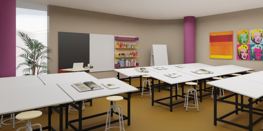 L’ambiente sarà arredato con soluzioni flessibili e accoglienti: pouf, panche morbide, microaule, pannelli fonoassorbenti a forma di foglia di lauro e arredi integrati con essenze vegetali. La scuola sarà dotata delle migliori tecnologie per attività di robotica e modellazione/stampa 3D.