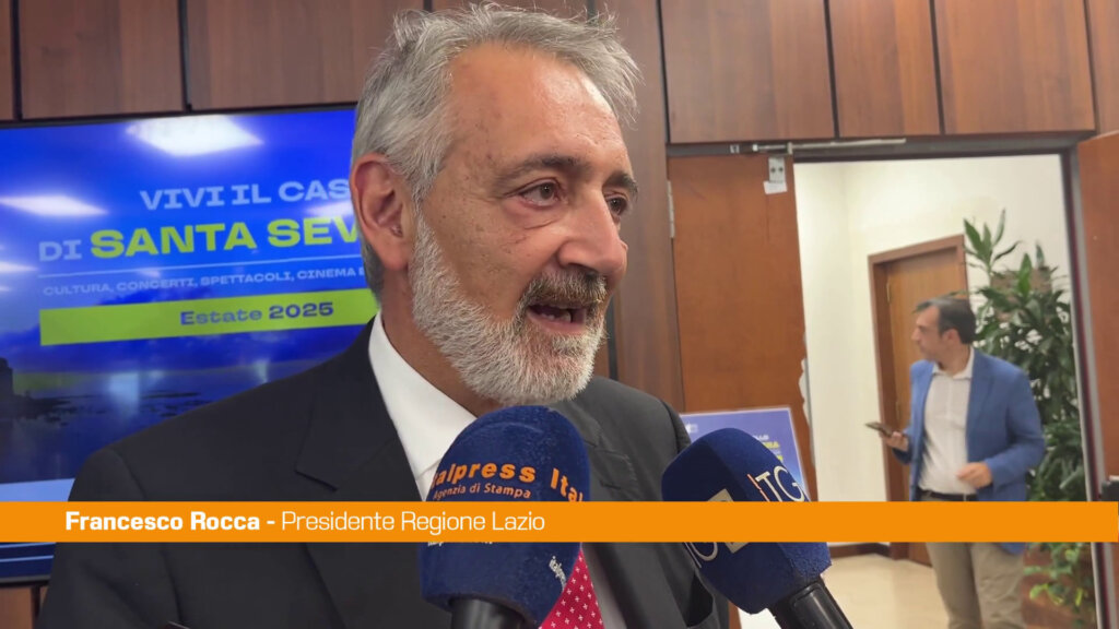 ROMA (ITALPRESS) – “Il Castello è un patrimonio unico e straordinario. Penso che un programma migliore non si potesse avere. Sono due mesi intensi con cinema, musica, cantanti, opera, balletti”. Lo ha detto il presidente della Regione Lazio, Francesco Rocca, a margine della conferenza stampa di presentazione del programma estivo di eventi, quasi tutti gratuiti, che si terranno tra luglio e agosto al castello di Santa Severa. Sul rischio di togliere valore alla cultura con l’ingresso gratuito? Rocca guarda ai giovani “La cultura oggi è probabilmente una delle cose che manca. Dobbiamo fare in modo che si favorisca una una nuova presa di contatto. Fare in modo che ci sia un’accessibilità degli spettacoli è un’idea che a me piace”.