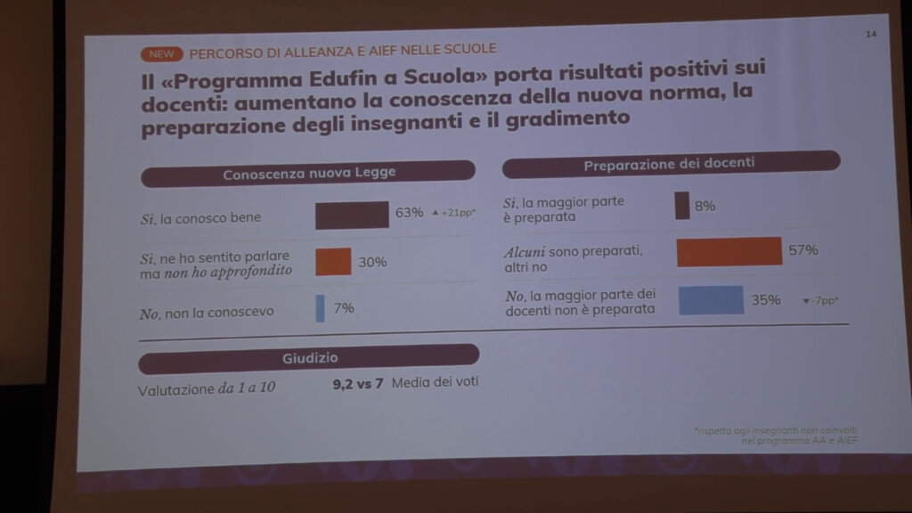 ROMA (ITALPRESS) – Un crescente livello di consapevolezza tra i docenti e un forte apprezzamento delle famiglie per l’introduzione dell’educazione finanziaria a scuola. E’ quanto emerge dallo studio presentato nella Sala Matteotti alla Camera dei Deputati da Alleanza Assicurazioni, Compagnia di Generali Italia, e AIEF (Associazione Italiana Educatori Finanziari), insieme a Fondazione Mario Gasbarri e con la collaborazione di BVA Doxa.