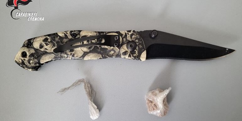 Poco dopo le 16:30, la pattuglia di Camisano si trovava sulla SP12, nel Comune di Camisano, quando ha notato un’auto sospetta con il solo conducente a bordo. I militari lo hanno fermato e identificato, notando che era particolarmente agitato e nervoso. Per questo motivo è stato perquisito e, sotto un sedile, è stato trovato un coltello a serramanico della lunghezza di 18 centimetri circa, mentre in un portaoggetti un involucro contenente 2,3 grammi circa di eroina. Nel portafoglio aveva anche una dose di cocaina.