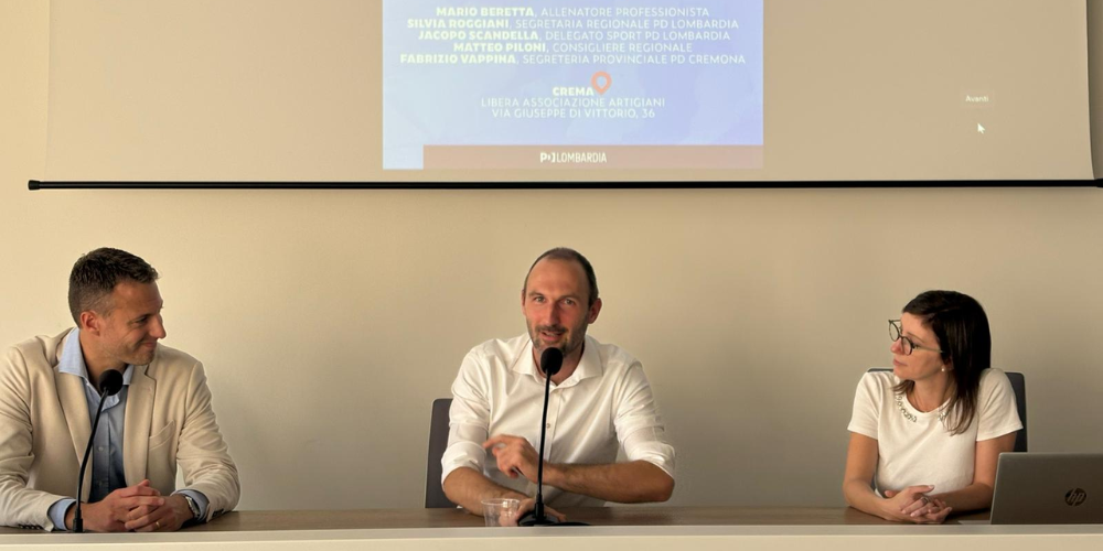 A Crema è andato in scena il convegno “Sport e Lavoro”, presieduto dal delegato regionale allo Sport del Pd Jacopo Scandella, che ha visto protagonisti vari volti del partito come Silvia Roggiani, il sindaco Fabio Bergamaschi e il consigliere regionale Matteo Piloni.