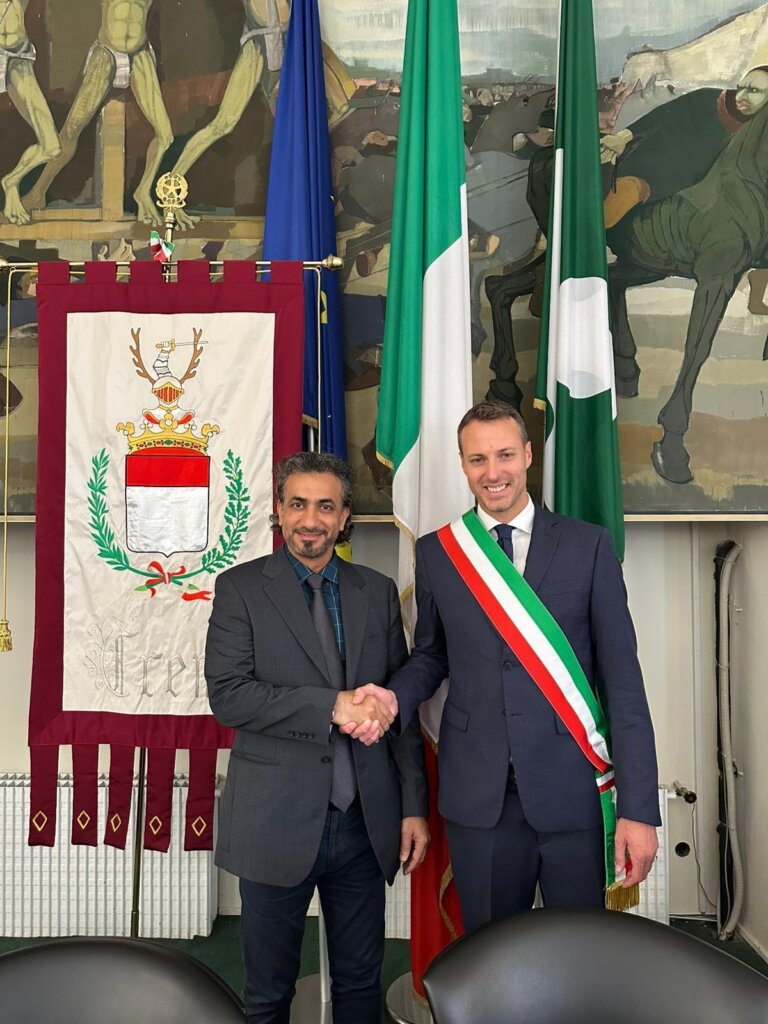La città di Crema ha accolto un ospite d’eccezione: Sua Eccellenza Ali Abdalla Rashid Nasir Al Mualla, artista e scultore di fama internazionale, conosciuto come lo “Sceicco della Sostenibilità”. La sua visita è stata promossa da Aurela Cuku, Vicepresidente dell’associazione Colors for Peace, da anni impegnata a diffondere valori di unità e fratellanza attraverso l’arte dei bambini.
