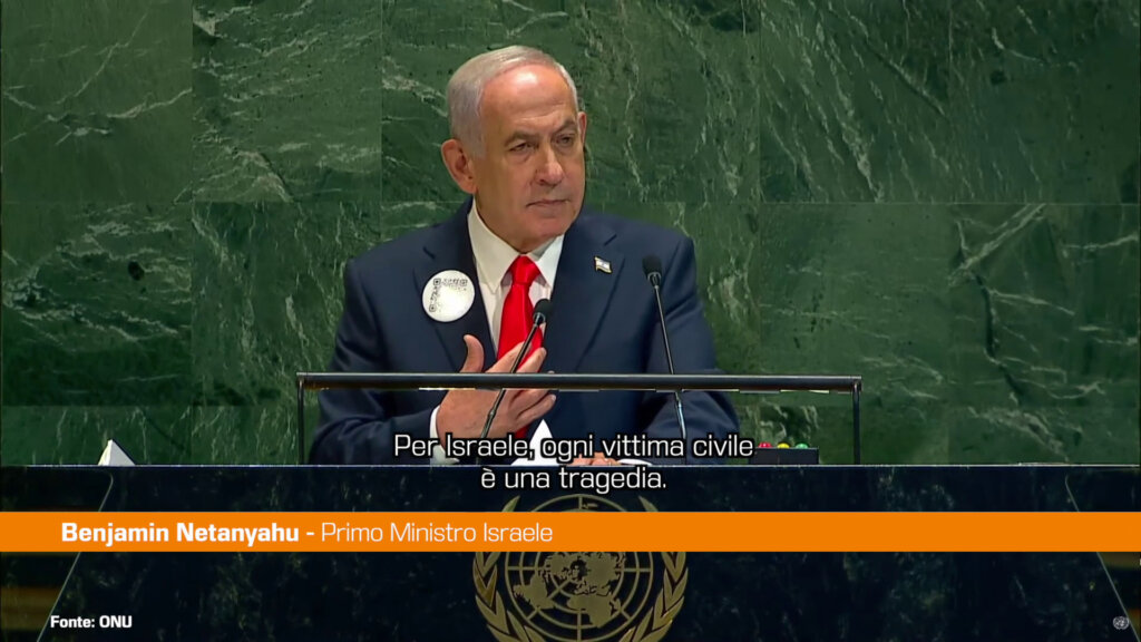 NEW YORK (STATI UNITI) (ITALPRESS) – Il primo ministro israeliano, Benjamin Netanyahu, ha dichiarato davanti all’Assemblea generale delle Nazioni Unite che l’accusa a Israele di genocidio a Gaza è falsa. “Per Israele, ogni