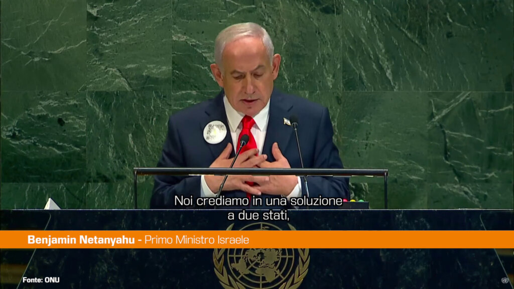 NEW YORK (STATI UNITI) (ITALPRESS) – I “palestinesi non hanno mai voluto uno Stato palestinese accanto a Israele, ma al posto di Israele, e hanno sempre rifiutato le nostre proposte”. Lo ha detto il primo ministro israeliano, Benjamin Netanyahu, davanti all’Assemblea generale delle Nazioni Unite. La soluzione a due Stati “è rigettata non solo da Hamas, ma anche dall’Autorità nazionale palestinese, che offre ricompense ai terroristi”, ha aggiunto.