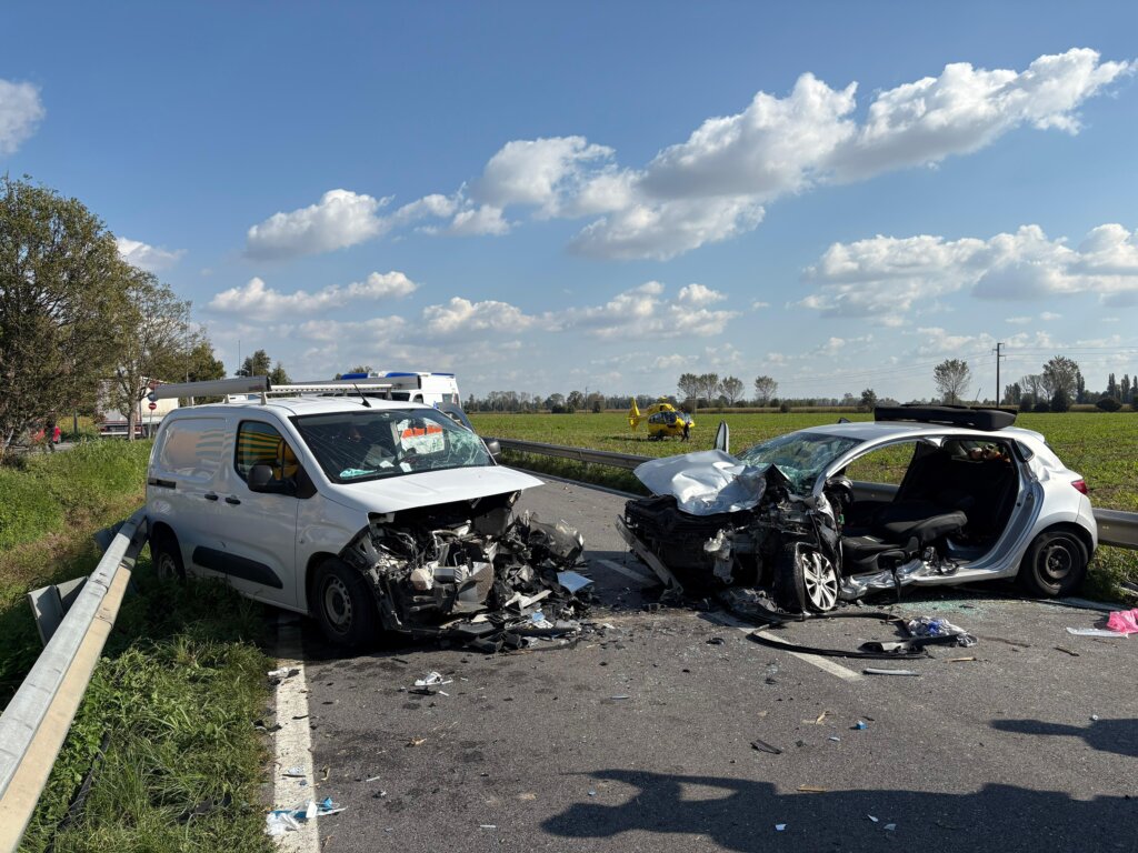 Pauroso frontale a Romanengo, lungo la Sp 235, nota come “Serenissima”, che collega il paese a Soncino. Erano circa le 13.45 quando si è verificato lo schianto, che ha visto coinvolti due mezzi: una Renault Clio e un furgone Opel.