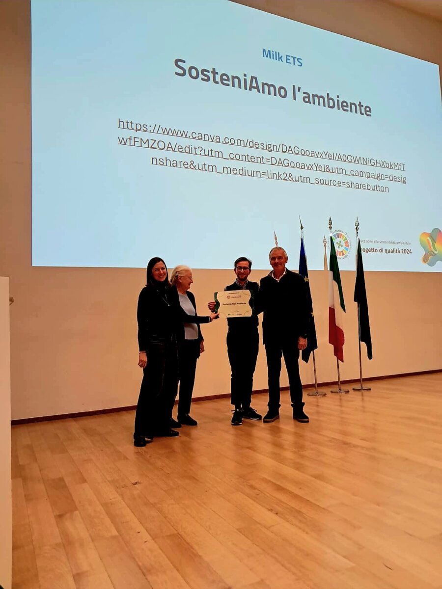 All’Auditorium G. Testori in piazza Città di Lombardia a Milano, l’associazione MILK-ETS ha ricevuto il prestigioso riconoscimento come Progetto di Qualità per l’Educazione Ambientale e alla Sostenibilità 2024, promosso da Regione Lombardia e Fondazione Lombardia per l’Ambiente.