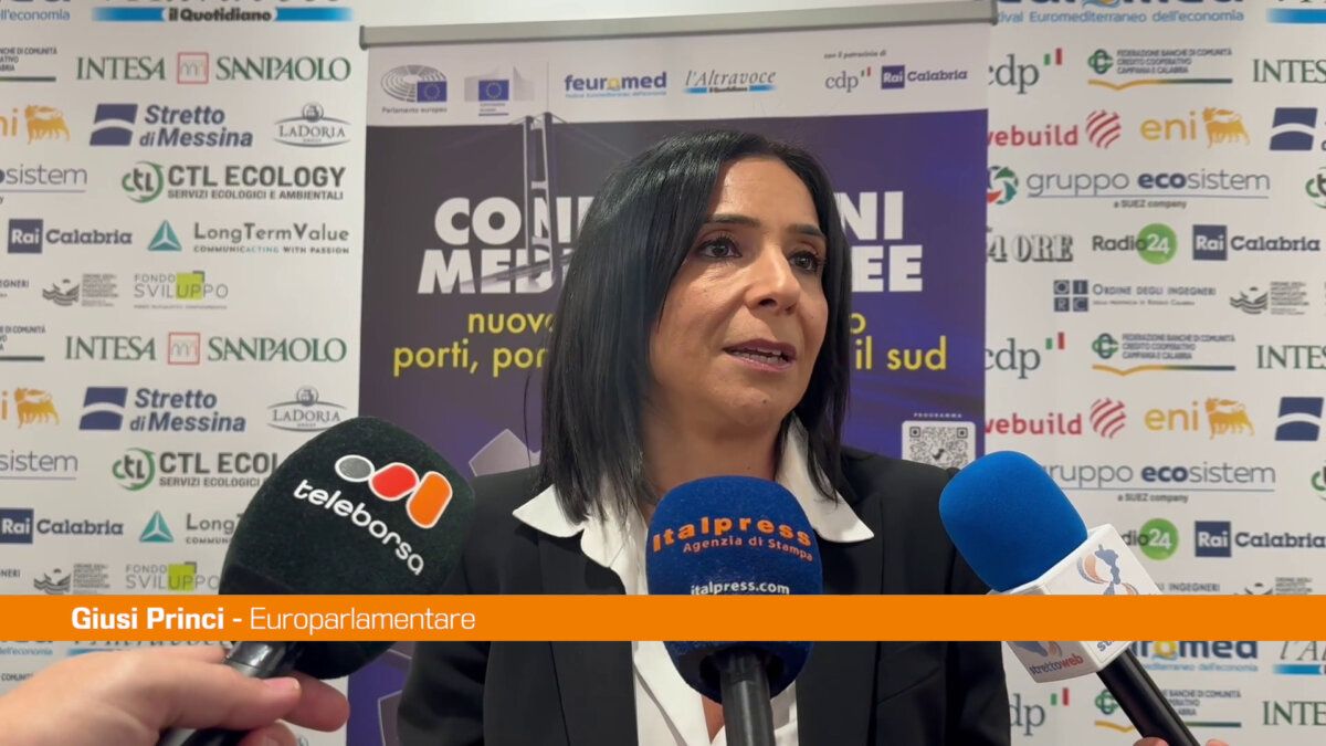 REGGIO CALABRIA (ITALPRESS) – “Il ponte sullo Stretto, la più importante opera ingegneristica del mondo con migliaia di posti di lavoro, il porto di Gioia Tauro, l’housing abitativo per riqualificare i borghi e determinare lo sviluppo delle aree interne: i prossimi anni devono vedere un Mediterraneo sempre più centrale e un Sud che da fanalino di coda diventi motore di sviluppo in un’Italia che non sia più a doppia velocità. In un’Europa sempre più flessibile e coerente allo sviluppo dei territori”. Lo ha detto l’europarlamentare Giusi Princi, a margine della due giorni “Connessioni Mediterranee”, in corso a Reggio Calabria.