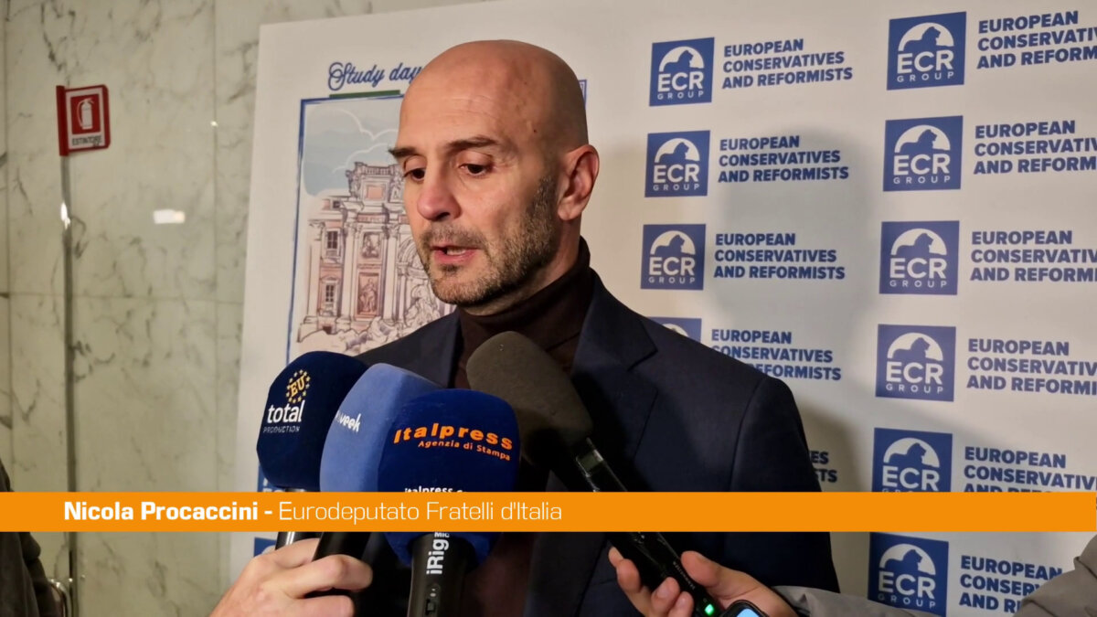 ROMA (ITALPRESS) – “Noi ribadiamo ciò che abbiamo sempre fatto, ovvero sostenere il popolo ucraino rispetto a un’invasione vigliacca e violenta da parte della Russia . Se passa il principio che qualunque Stato può invadere un altro Stato senza trovare la solidarietà degli altri popoli, naturalmente è un principio pericoloso perché rischia di sovvertire un ordine comunque ha concesso a questa parte di mondo un periodo di pace come non si era mai visto prima”. Così Nicola Procaccini, eurodeputato di FdI e co-presidente del gruppo Ecr, a margine degli ECR Study Days in corso a Roma.