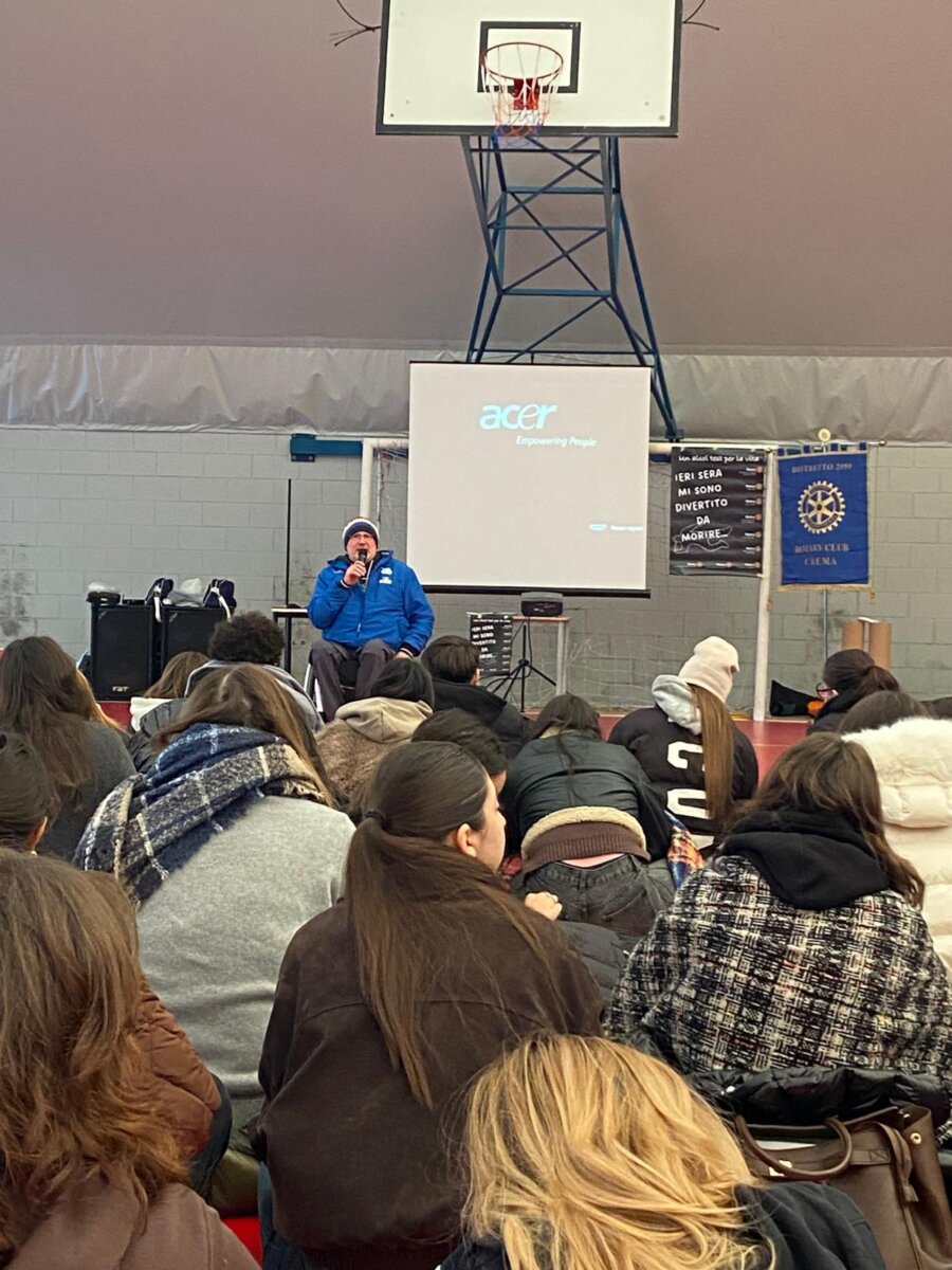 Anche loro, però, hanno voluto compiere un’attività concreta: “Ragazzi, salite su queste carrozzine e giocate a pallamano”, hanno detto alla fine del loro intervento. Difficile (per i ragazzi del Munari), ma non impossibile (per Grazia e Maurizio). “Ora vi doniamo un depliant informativo realizzato dai Rotary e un alcol test monouso e – ha scandito Palmieri al termine dell’incontro sottolineando ai ragazzi: se avete bevuto alcolici, usate l’alcol test e non mettetevi alla guida, ma chiamate i genitori, meglio che chiamate voi, pur sentendovi una ramanzina – ha concluso – piuttosto che a farlo sia la Croce Rossa o la Polizia Stradale: in questo caso, infatti, potrebbe essere già avvenuto l’irreparabile”.