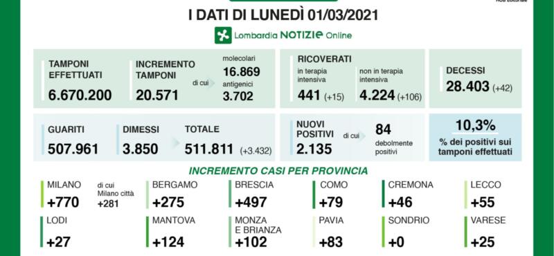 Cronaca 26 Feb 2021 Covid, 149 casi in provincia, 4.557 in regione. Crescono ricoveri e indice di contagio