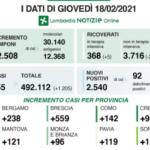 Cronaca 19 Feb 2021 Covid, 100 casi in provincia, in regione 3.724 nuovi positivi L'indice di contagio è al 7,1%